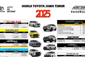 Berikut ini adalah daftar harga Toyota Pasuruan 2025, informasi harga ter update Toyota, harga yang tertera diatas belum termasuk diskon pembelian, kami memberikan diskon pembelian pada setiap pembelian mobil Toyota di Pasuruan dan sekitarnya sperti Probolinggo, Jember, Malang, Gresik,... selengkapnya